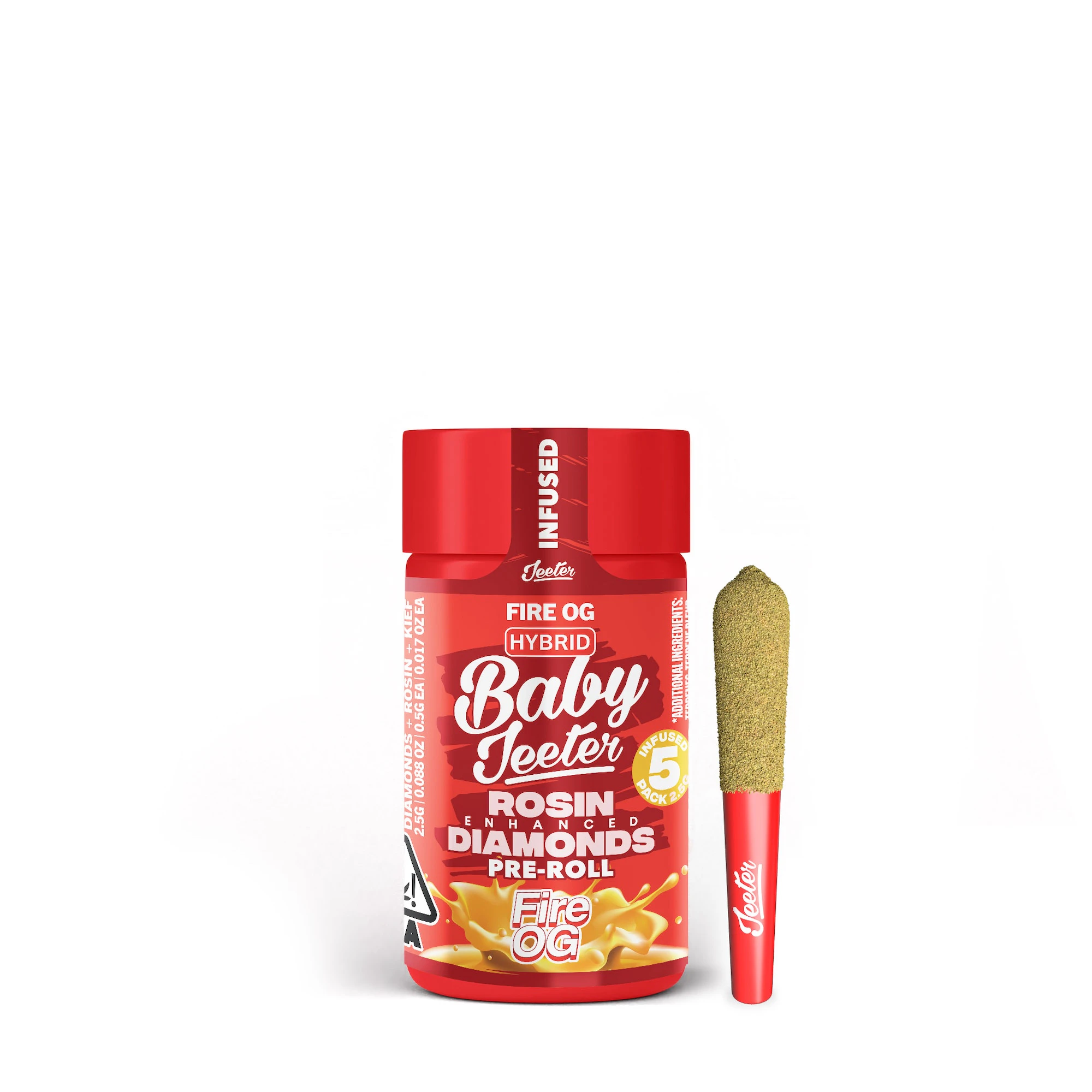 Five .5g Joints 2.5g Infused w/ THCA diamonds and rosin, dusted in kief.
