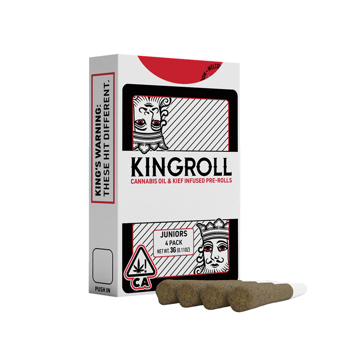 Introducing Kingroll Juniors, your new favorite multipack. Every box of Juniors contains 4 individual .75 gram kief coated pre-rolls, infused with Kingpen’s award-winning cannabis oil and combined with high-quality flower. Great for multiple clean, slow burning seshes.