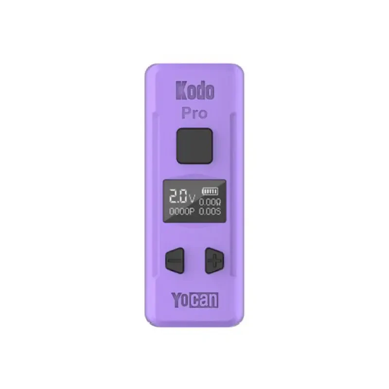 Key Features: - Battery Capacity: 400mAh with USB-C fast charging - Voltage Range: Adjustable from 1.8V to 4.2V in 0.1V steps - OLED Display: Shows voltage, puff count, battery life, and timer - Preheat Mode: 10-second warm-up at 1.8V for thicker oils - Puff Counter: Tracks up to 9,999 puffs, resets automatically - Compact Size: Ultra-portable, fits in your palm or pocket - 510 Thread: Compatible with most prefilled or refillable carts - Lanyard Hole: Attach for convenient carrying (lanyard not included) Don’t let its size fool you—the Yocan Kodo Pro is a powerhouse in your pocket. This compact, palm-sized 510-thread battery brings advanced customization and smart features to cartridge vaping like never before. Featuring an OLED digital display, precise voltage control, and a built-in puff counter, the Kodo Pro is perfect for users who want to fine-tune their sessions with total visibility and control. With voltage adjustable in ultra-precise 0.1V increments from 1.8V to 4.2V, you can dial in the perfect heat setting for flavor, clouds, or potency. The bright OLED screen shows your battery level, puff count, session timer, and voltage—all in real-time. Whether you’re using thick distillates or thin oils, the Kodo Pro adapts to your preferred cartridges and vaping style. It also includes a 10-second preheat mode for smoother hits and more consistent performance, especially in colder environments or when using thicker oils. Despite all this power, it still fits discreetly in your hand or pocket and features a handy lanyard loop for on-the-go convenience. And with USB-C charging, you’re back to vaping faster than ever. This is not just a battery—it’s a smart, stylish, and efficient companion for any cartridge lover who values precision, portability, and performance.